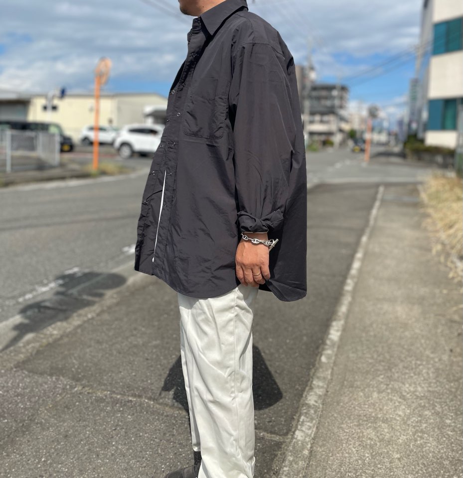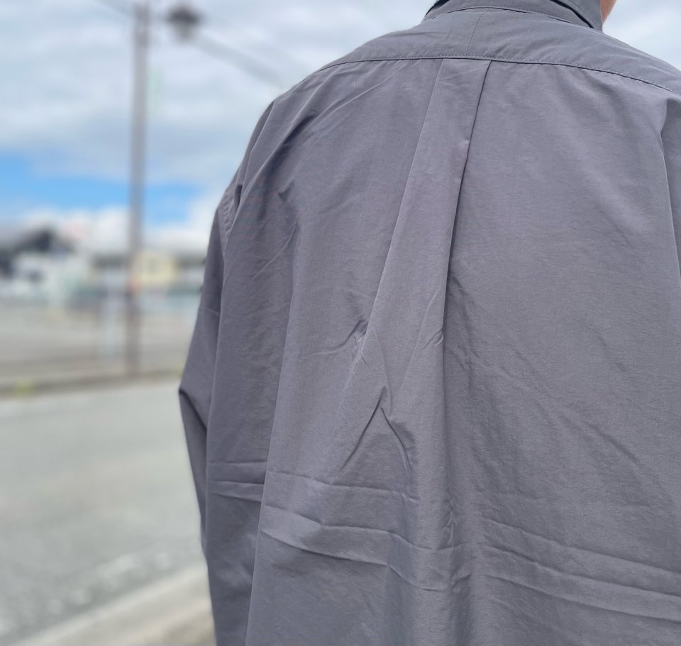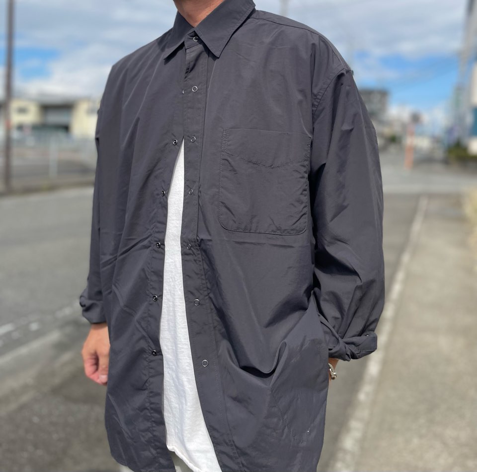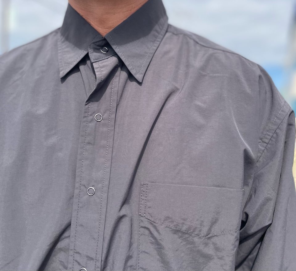 速乾性、UVカット機能を兼備したSUPPLEX NYLONで作られたLong Sleeve Big Shirt。