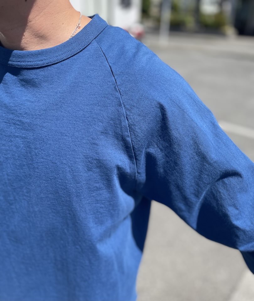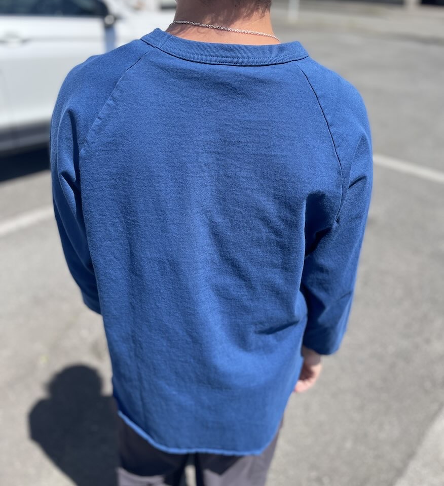 アメリカンアスレチックウェアといえばのディテールである丸胴使いのデザインと裾のラウンドカット、ラグランスリーブ、ネックのバインディングが特徴です。